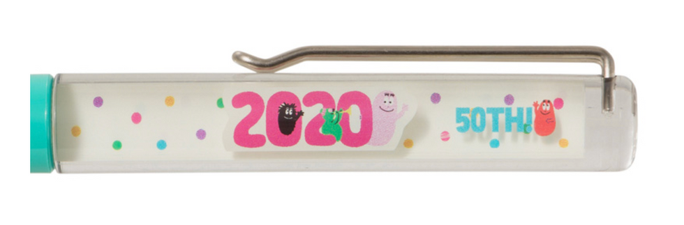 バーバパパ50年記念アートが動く、PLAZA・MINiPLA限定のフローティングペン®です。 風船と紙吹雪が飛び交うお祝いムードたっぷりな楽しいデザイン。 シルバーのクリップ付きなので胸ポケットやバッグの内ポケットなどに固定できます。