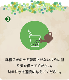 鉢植えをの土を乾燥させないように湿気を保ってください。